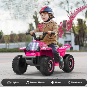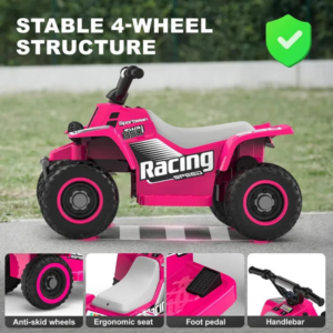 Our ride-on ATV is equipped with a 6V 7Ah larger-capacity rechargeable battery, compared to most 6V 4.5Ah ride-ons. A full charge will last approximately 80-120 minutes longer, providing your child with longer periods of continuous play. This kid’s electric quad car has a low center of gravity and sturdy four-wheel structure for a safe and stable ride. The seat is designed to fit the curves of children’s bodies for maximum comfort, while the footrests provide a comfortable fit for young children’s feet.