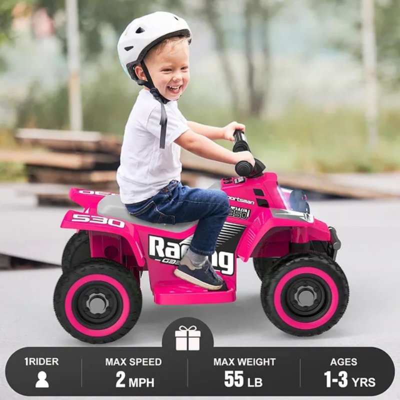 An ideal gift for children aged 18-36 months for their first race. Maximum weight up to 55 lbs. This 6V electric quad car is designed to be a real kids-sized beach ATV, has a handle with a horn, and brings driving fun while developing motor skills (under parental supervision). It is really a wonderful choice as a gift for toddlers, unisex. In addition, this electric toy car is ASTM F963 CPSIA certified, harmless to children’s health.