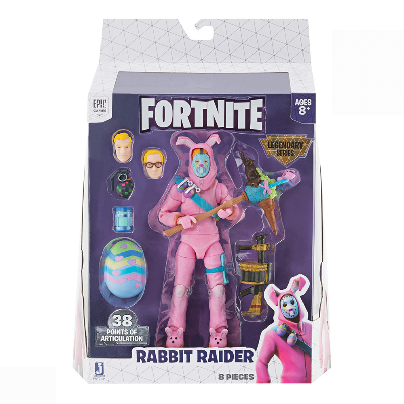 Level up with the Fortnite Legendary Series Figure Pack! These new 6-inch, articulated action figures have incredible details, feature interchangeable faces, and premium loadouts. The 6-inch scale is perfect for Fortnite in real life, fitted with a harvesting tool, weapon, and back bling. Assortment features Skull Trooper, Rabbit Raider, The Visitor, Enforcer, Havoc and Wild Card. Includes: 6-inch Articulated Rabbit Raider Figure, 4 Interchangeable Faces, 1 Back Bling, 1 Harvesting Tool, 2 Weapons, and 1 Small Accessory. Age: 8+