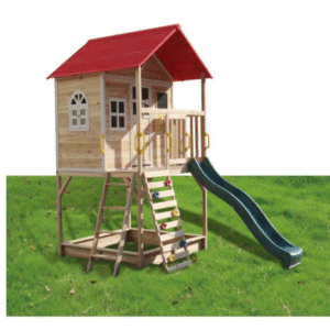 Kids Outdoor Wooden Playhouse with Slide & Climbing Wall