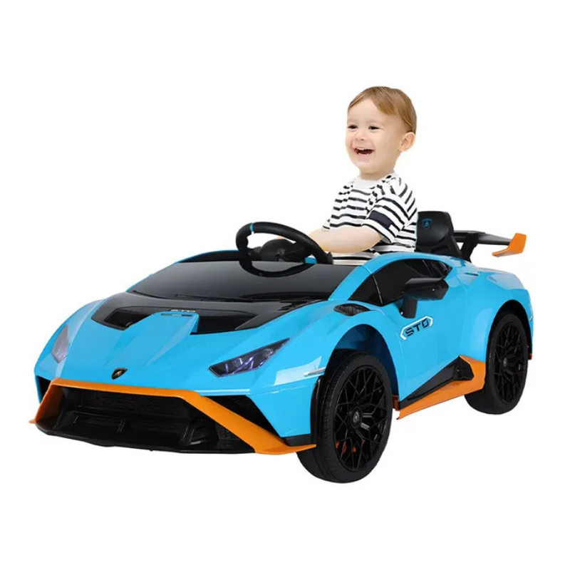 Lamborghini Hurcan STO Electric Ride-on is sure to make heads turn as kids go out for a ride. Features a one-button automatic start and a powerful 12 V 7 AH battery for long rides. Parents can control the car with a 2.4G remote control, to ensure the safety of kids.