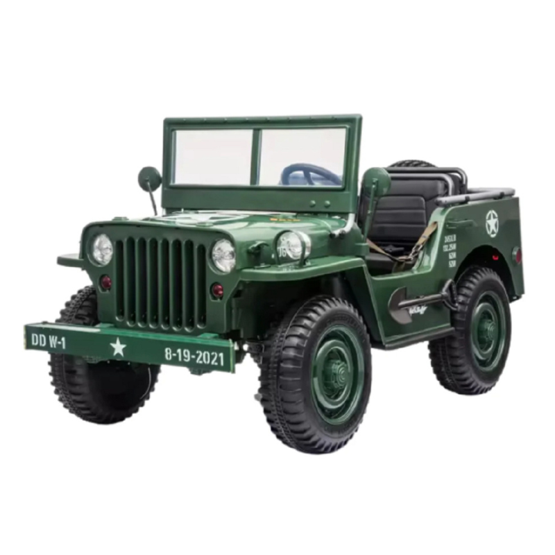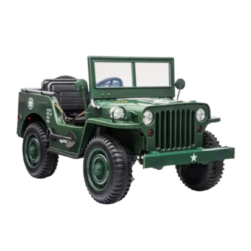 Authentic Military Design: This ride-on is modeled after the classic Willy Jeep, complete with a military green color, perfect for 3 kids aged 3 to 8.