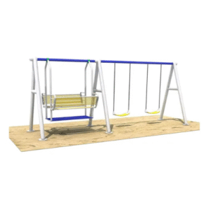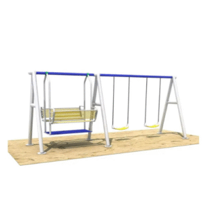 You can have 4 children on the swings at one time, so no more fighting between children to have a turn. Little legs, hearts, and souls can relax in the individual swings. A fabulous metal swing set for year-round outdoor playtime fun. This Myts backyard swing set comes with 2 swings and 1 dual swing set. It is constructed of powder-coated steel to resist rusting and UV-protected polyethylene plastic to reduce heat retention, fading, and discoloration. Unlike a wooden swing set, with a metal construction, there are no splinters, warping, or rough edges.