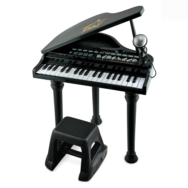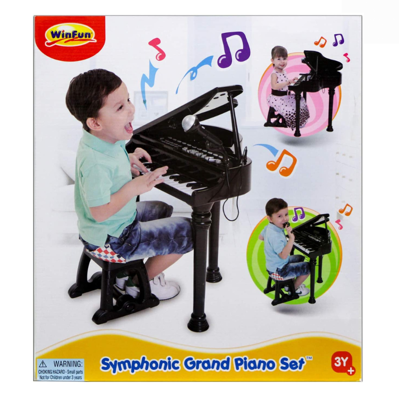 Get your Little Musician started with this Symphonic Grand Piano Set. The Piano is set with 37 Keys with 15 Built-in Demo Songs, 8 Instrument Choices, 8 Rhythm Choices and 8 Background Music Choices to help Stimulate Creativity. Your Little Musician can Sing Along with a Detachable Microphone.