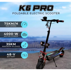The Winner Sky K6 Pro is a powerful adult electric scooter built for both city travel and off-road style riding. It typically comes with a strong dual-motor setup, LED lighting, a robust frame, fat tyres, and a foldable design — combining power, comfort, and practicality in one ride.